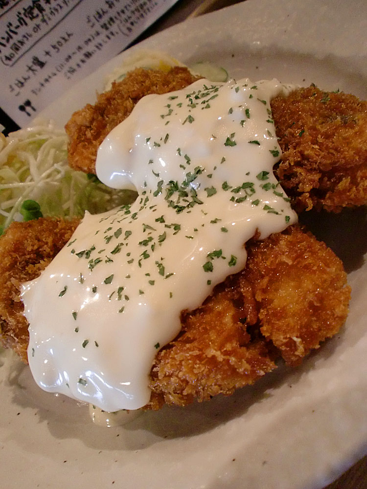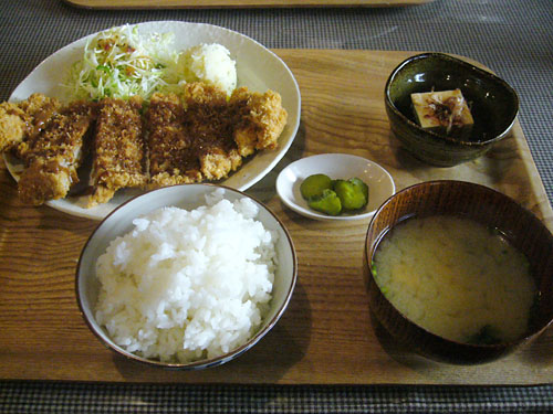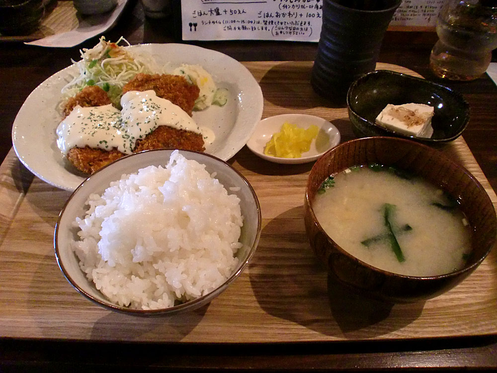 さてさてランチということでメニューを一通りさらっと拝見。入店時にすでに他の客が食べていた大盛りの唐揚げ定食を見て決まっていたので、それを注文。が、売り切れ…早くないですか?仕方ないのでチキンカツ定食を注文しました。でもこのボリュームで590円はお得ですよね!サクっとしたカツにのったソースも何かがブレンドされた感じで美味しゅうございました。