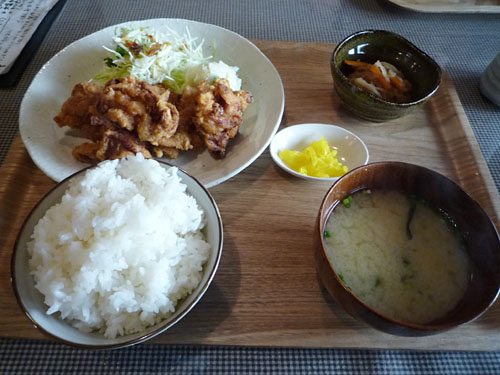 食べました!からあげ定食。ヘルシーな薄味で、自分で塩をふりかけて調整すると良いです。美味しいですよ。