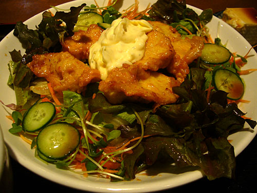 チキン南蛮定食700円。甘酢ソースとタルタルの王道な味付け。野菜たくさんで栄養満点。もも肉でないのが唯一残念。それって結構大事ですよね。<2009.5.16追記>